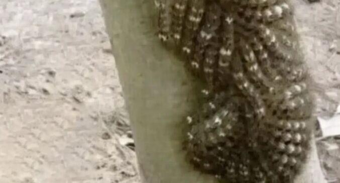 Αυτό που έμοιαζε με ακίνδυνο ριγωτό σχέδιο στον φλοιό του δέντρου ήταν στην πραγματικότητα ένα σύμπλεγμα από κάμπιες Lonomia — ένα από τα πιο δηλητηριώδη έντομα στον κόσμο. Καμουφλάρονται τέλεια με τον κορμό, έτσι ώστε να μη συνειδητοποιήσεις ποτέ ότι βλέπεις ζωντανά πλάσματα… μέχρι να είναι αργά. Γιατί ένα μόνο άγγιγμα μπορεί να είναι θανατηφόρο. Οι μικροσκοπικές τους αγκάθες εγχέουν ισχυρό δηλητήριο. Ακόμα και η ελαφριά επαφή μπορεί να προκαλέσει: