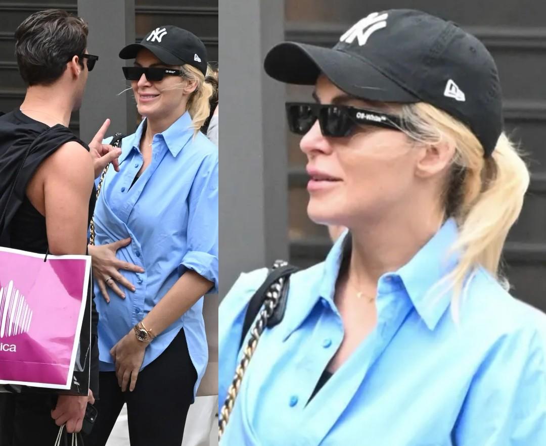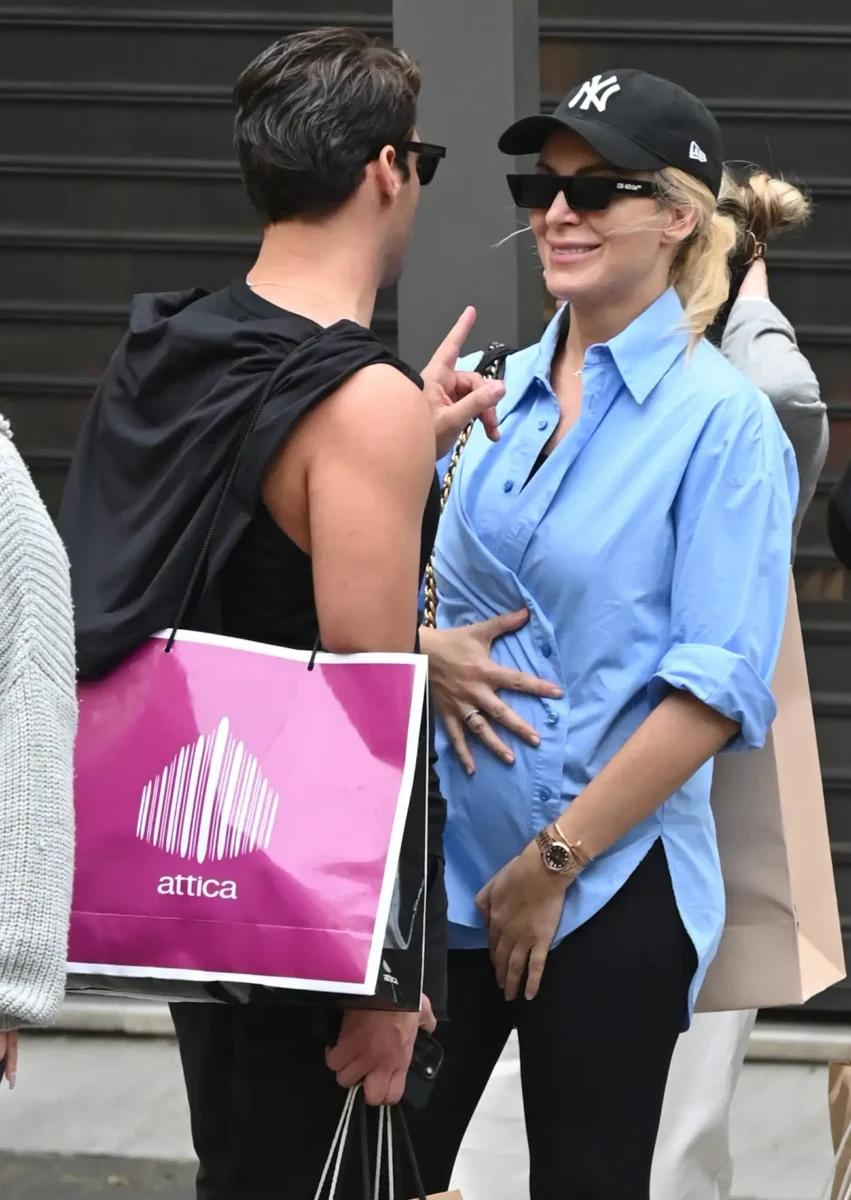 Η Κατερίνα, χωρίς ίχνος μακιγιάζ, έδειχνε πιο φυσική, φρέσκια και ευτυχισμένη από ποτέ. Επέλεξε ένα oversized γαλάζιο πουκάμισο που έκρυβε την κοιλίτσα της, μαύρο κολάν και chunky μαύρα μποτάκια, ολοκληρώνοντας το look με μαύρο καπέλο baseball και γυαλιά ηλίου. Το casual στυλ της συνδύασε με μια tweed τσάντα ώμου, αποδεικνύοντας για ακόμη μια φορά πως μπορεί να είναι chic ακόμη και στις πιο καθημερινές της στιγμές.