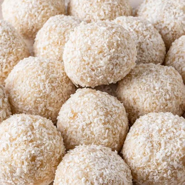 4. Πλάθετε μικρές μπάλες και τις κυλάτε σε ινδοκάρυδο.