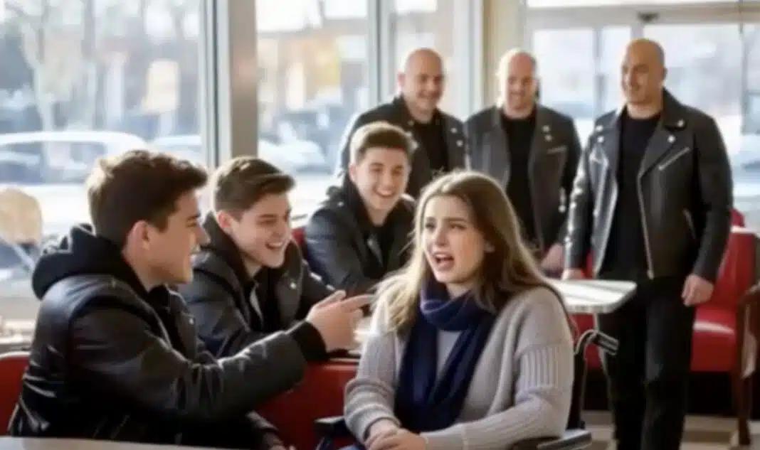 Στο δίπλα τραπέζι, μια παρέα εφήβων αγοριών γελούσε χαιρέκακα. Ο ένας «κατά λάθος» έριξε το πιάτο της κάτω, σκορπίζοντας φαγητά το πάτωμα. Ένας άλλος έσπρωξε το καροτσάκι της, κάνοντάς το να τρέμει.