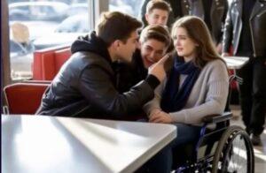 Στο δίπλα τραπέζι, μια παρέα εφήβων αγοριών γελούσε χαιρέκακα. Ο ένας «κατά λάθος» έριξε το πιάτο της κάτω, σκορπίζοντας φαγητά το πάτωμα. Ένας άλλος έσπρωξε το καροτσάκι της, κάνοντάς το να τρέμει.
