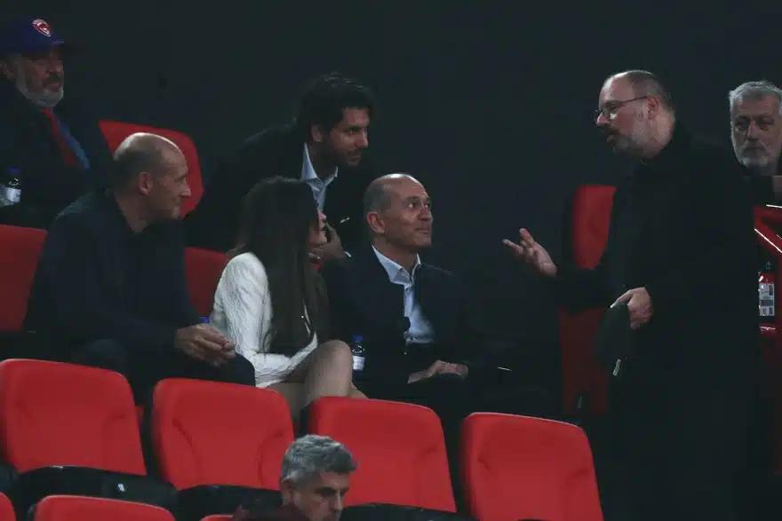 Η νέα πρέσβης των ΗΠΑ στην Ελλάδα παρακολούθησε την αναμέτρηση των «ερυθρόλευκων» με τους Λιθουανούς από την εξέδρα, μαζί με τον Παναγιώτη και τον Γιώργο Αγγελόπουλο