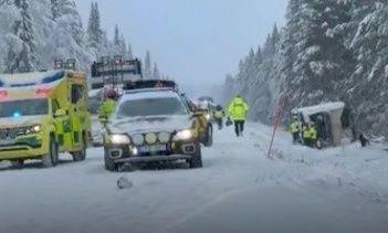 Δεκαέξι συνολικά είναι οι τραυματίες μετά την ανατροπή λεωφορείου σε χαντάκι στη Βιλμίνα της Σουηδίας.