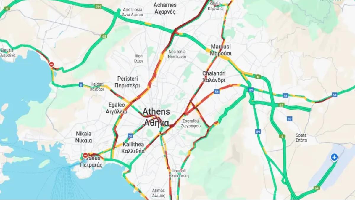 Η εικόνα στο κέντρο της Αθήνας είναι αποκαρδιωτική, με βασικές αρτηρίες να βρίσκονται σε πλήρη κυκλοφοριακή παράλυση. Αντίστοιχα, οι λεωφόροι Κηφισίας και Μεσογείων καταγράφουν πολύωρες καθυστερήσεις, με τα οχήματα να κινούνται σημειωτόν καθ’ όλη τη διάρκεια της ημέρας. Δείτε live την κίνηση.