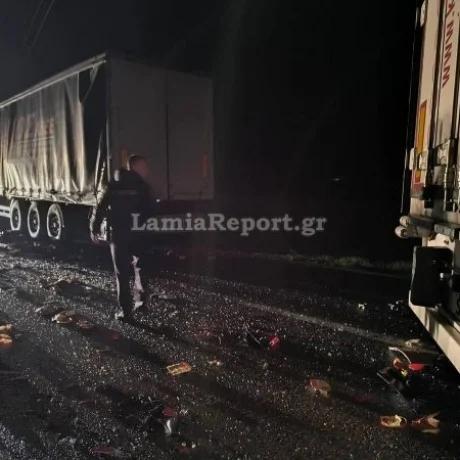 Το τροχαίο σημειώθηκε όταν νταλίκα με πολωνικές πινακίδες που κινούνταν προς Λαμία έφυγε -κάτω από αδιευκρίνιστες μέχρι στιγμής συνθήκες- στο αντίθετο ρεύμα και συγκρούστηκε μετωπικά με άλλη νταλίκα.