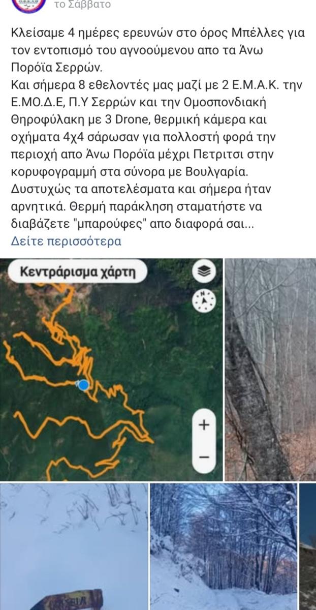 «Κλείσαμε 4 ημέρες ερευνών στο όρος Μπέλλες για τον εντοπισμό του αγνοούμενου απο τα Άνω Πορόϊα Σερρών.