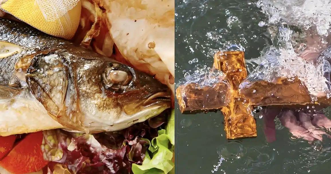 Παρότι τα Θεοφάνια δεν αποτελούν ημέρα νηστείας σύμφωνα με την Ορθόδοξη Εκκλησία και εντάσσονται στο Δωδεκαήμερο των Χριστουγέννων –περίοδο χωρίς διατροφικούς περιορισμούς– σε πολλές περιοχές της Ελλάδας έχει επικρατήσει το έθιμο της κατανάλωσης ψαριού. Η επιλογή αυτή συνδέεται κυρίως με τον συμβολισμό του αγιασμού των νερών και έχει περάσει στη σύγχρονη λαϊκή παράδοση.