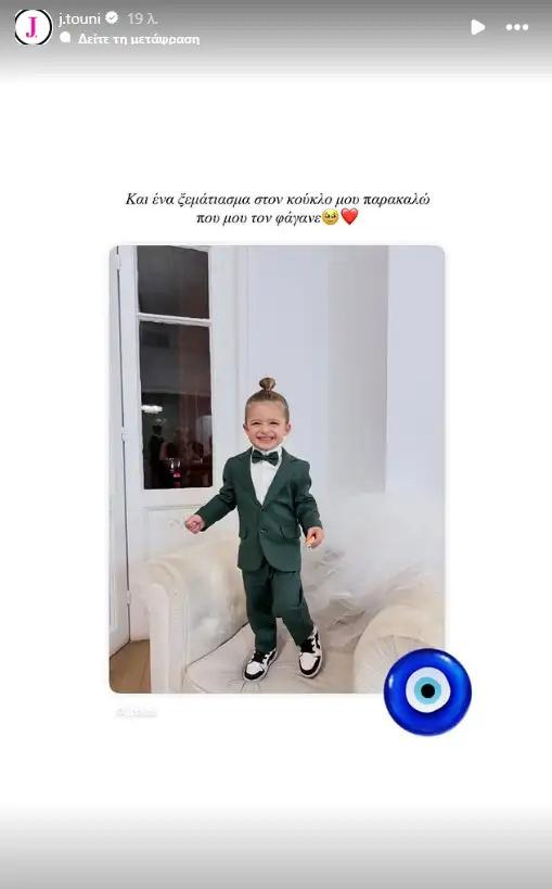«Και ένα ξεμάτιασμα στον κούκλο μου παρακαλώ που μου τον φάγανε», έγραψε με πίκρα η Ιωάννα Τούνη σε ένα άλλο story.