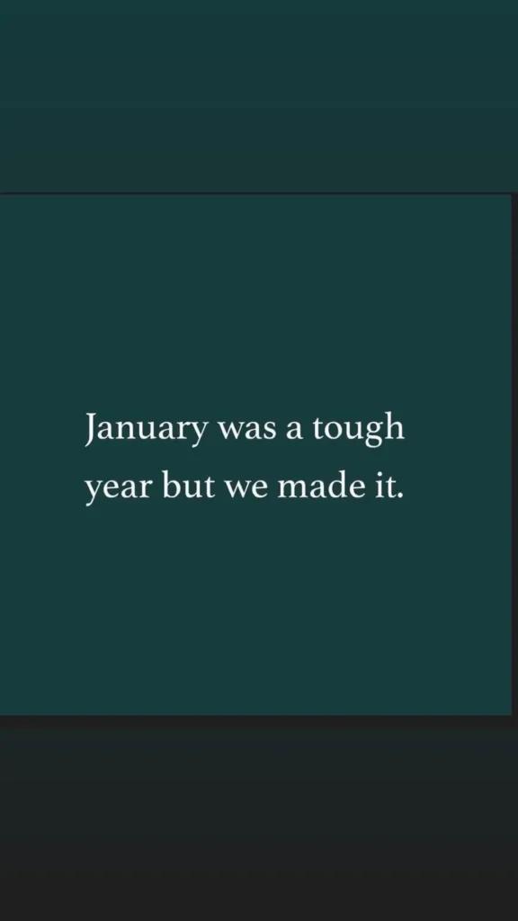 «Ο Ιανουάριος ήταν μία δύσκολη χρονιά, αλλά τα καταφέραμε», σημείωσε χαρακτηριστικά η παρουσιάστρια και δημοσιογράφος.