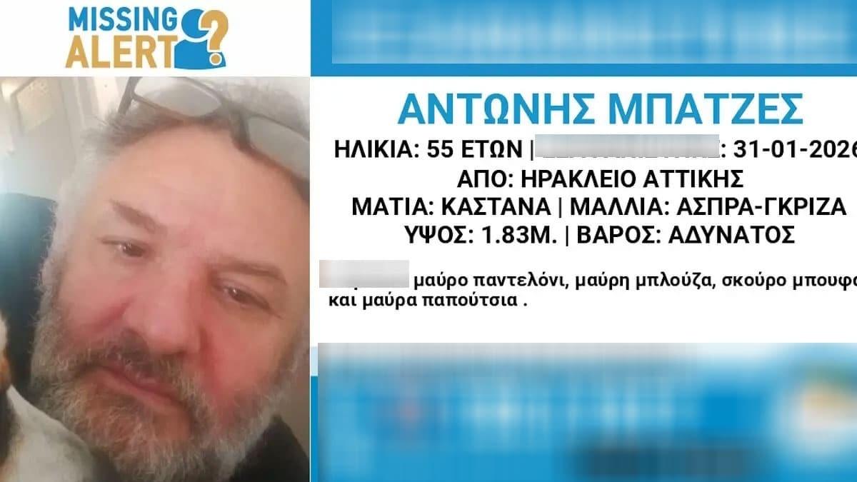 Υπενθυμίζουμε ότι ο Αντώνης Μπατζές, 55 ετών, είχε εξαφανιστεί στις 31/01/2026 από το Ηράκλειο Αττικής. «Το Χαμόγελο του Παιδιού» είχε ενημερωθεί στις 03/02/2026 για την εξαφάνιση του Αντώνη Μπατζέ και είχε προχωρήσει άμεσα στη δημοσιοποίηση των στοιχείων του ενήλικου, κατόπιν αιτήματος της οικογένειάς του, καθώς πιθανόν να συνέτρεχαν λόγοι οι οποίοι έθεταν τη ζωή του σε κίνδυνο.