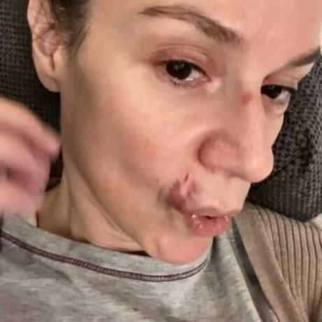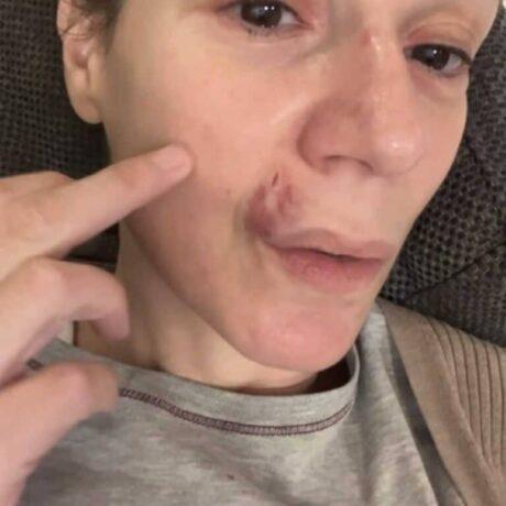 Το χτύπημα ήταν έντονο, με αποτέλεσμα να εμφανιστεί άμεσα μελανιά γύρω από το μάτι, ενώ τραυματίστηκαν και τα χείλη της.