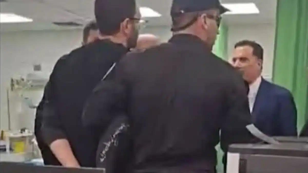 Το βίντεο κατέγραψε τη στιγμή που αστυνομικοί της συνοδείας του υπουργού προχωρούν στη σύλληψη ενός από τους υγειονομικούς που βρίσκονταν στο νοσοκομείο, με τον ίδιο τον γιατρό να ακούγεται να λέει: «Θέλω δικηγόρο». Σύμφωνα με τους συναδέλφους του, πρόκειται για τον Δημήτρη Ζιαζιά, γιατρό στο Γενικό Κρατικό Νίκαιας και μέλος του Γενικού Συμβουλίου της ΟΕΝΓΕ.