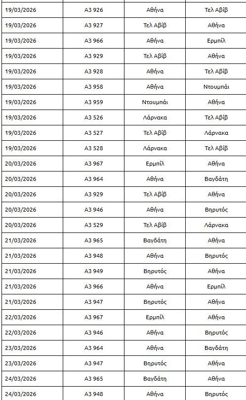 Διαβάστε επίσης: Aegean: Νέες ακυρώσεις πτήσεων λόγω πολέμου στη Μέση Ανατολή – Από και προς ποιες περιοχές