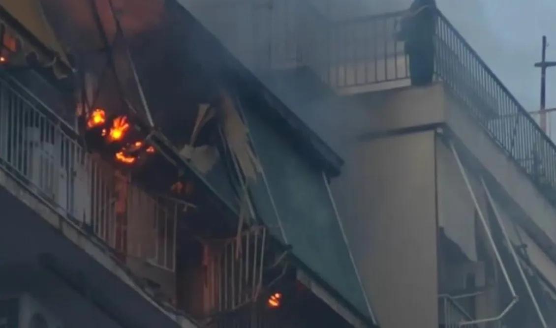 Απίστευτες σκηνές εκτυλίσσονται στου Γκύζη ύστερα από έκρηξη φιάλης αερίου που προκάλεσε πυρκαγιά. Η φωτιά ξέσπασε στην Κάλβου και η φιάλη εκτοξεύτηκε στα 50 μέτρα και καρφώθηκε σε άλλη πολυκατοικία, επί της Ραγκαβή.