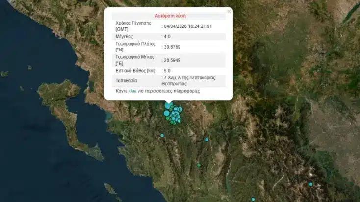 Σύμφωνα με το Γεωδυναμικό Ινστιτούτο Αθηνών, η σεισμική δόνηση σημειώθηκε 5 χιλιόμετρα βορειοανατολικά της Λεπτοκαριάς Θεσπρωτίας.