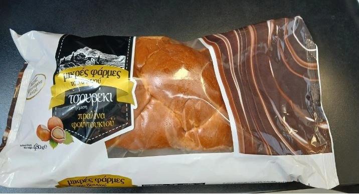 Πρόκειται για το προϊόν «Τσουρέκι με γέμιση πραλίνα φουντουκιού – Μικρές φάρμες του βουνού» με αριθμό παρτίδας Lot 066A1, συσκευασίας καθαρού βάρους 480g, το οποίο παράγεται και συσκευάζεται στην Ελλάδα για λογαριασμό της ΜΑΡΚΕΤ ΙΝ.