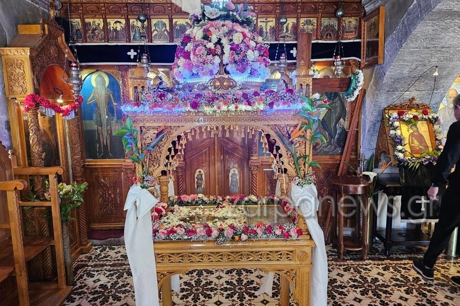 Φαίνεται πως ένα βήμα παραπέρα πήγαν τον στολισμό του Επιταφίου στον Ιερό Ναό του Προφήτη Ηλία στους Τάφους των Βενιζέλων στα Χανιά. Εκείνοι που επιμελήθηκαν τον στολισμό δεν έμειναν μόνο στα λουλούδια. Τοποθέτησαν στη κορυφή του Επιτάφιου φωτάκια led, όπως φαίνεται στις φωτογραφίες που βρήκαμε στο zarpanews.gr.